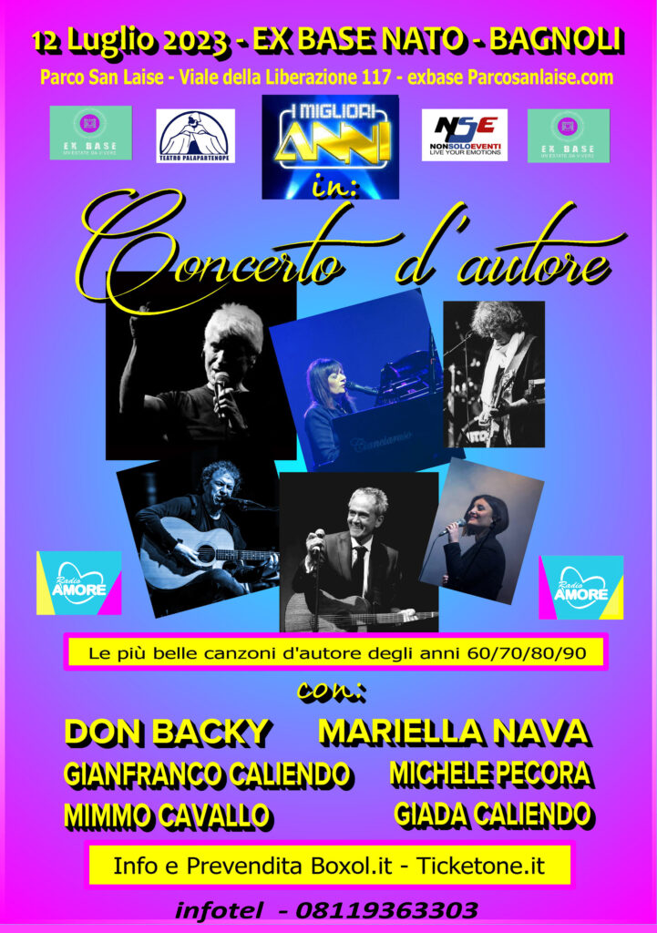La musica italiana è una vera propria macchina del tempo, capace di viaggiare fra i ricordi e le emozioni degli ascoltatori di ogni età. L’area dell’ex base Nato di Bagnoli, il 12 luglio 2023, alle ore 21:00, diverrà palcoscenico per una parata di stelle, i cui successi spaziano tra gli anni sessanta e i primi del duemila. Gli artisti sono accomunati dall’essere autori, oltre che interpreti.