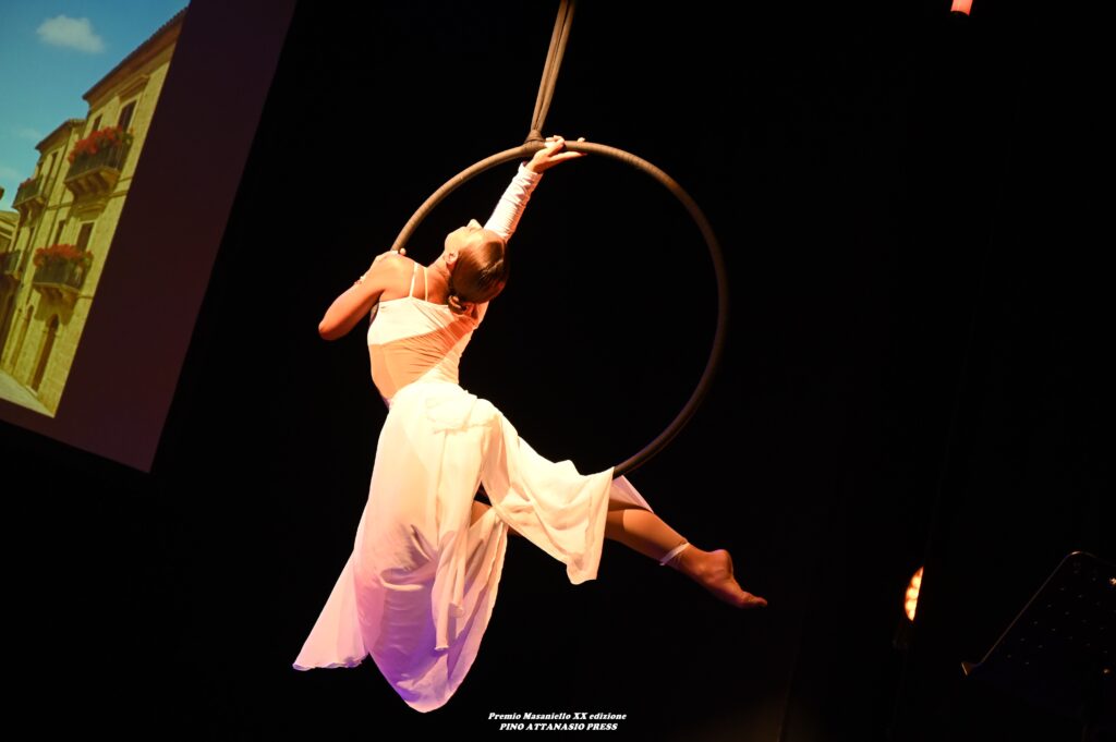 Susy Abbate ha regalato un momento di danza aerea.