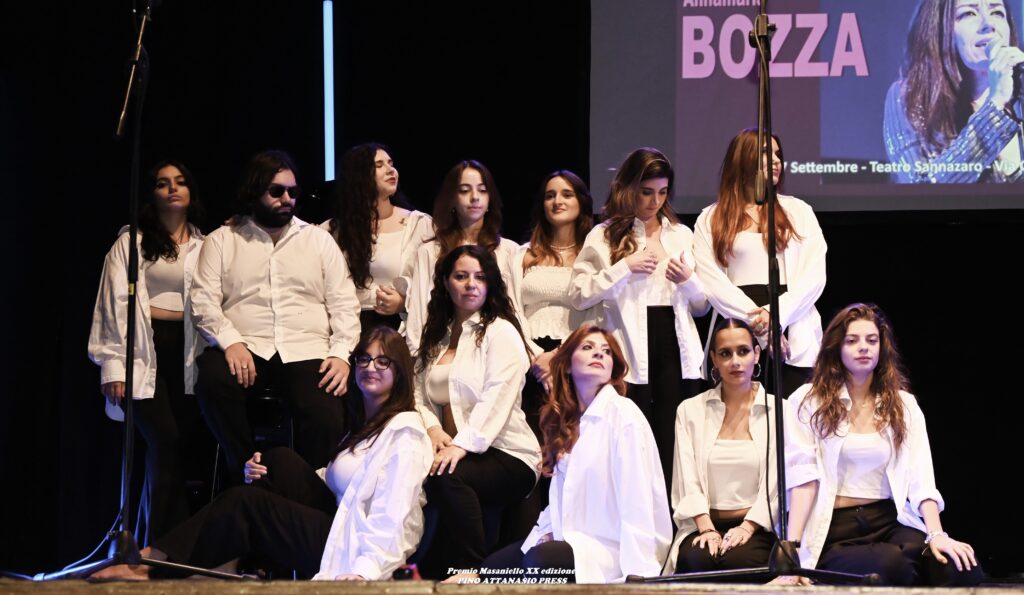 ha chiuso la bella serata il coro di Anna Maria Bozza insieme a tutti i premiati e gli artisti che saliti sul palco hanno reso un quadro finale che racchiude l’anima più autentica di Napoli.
