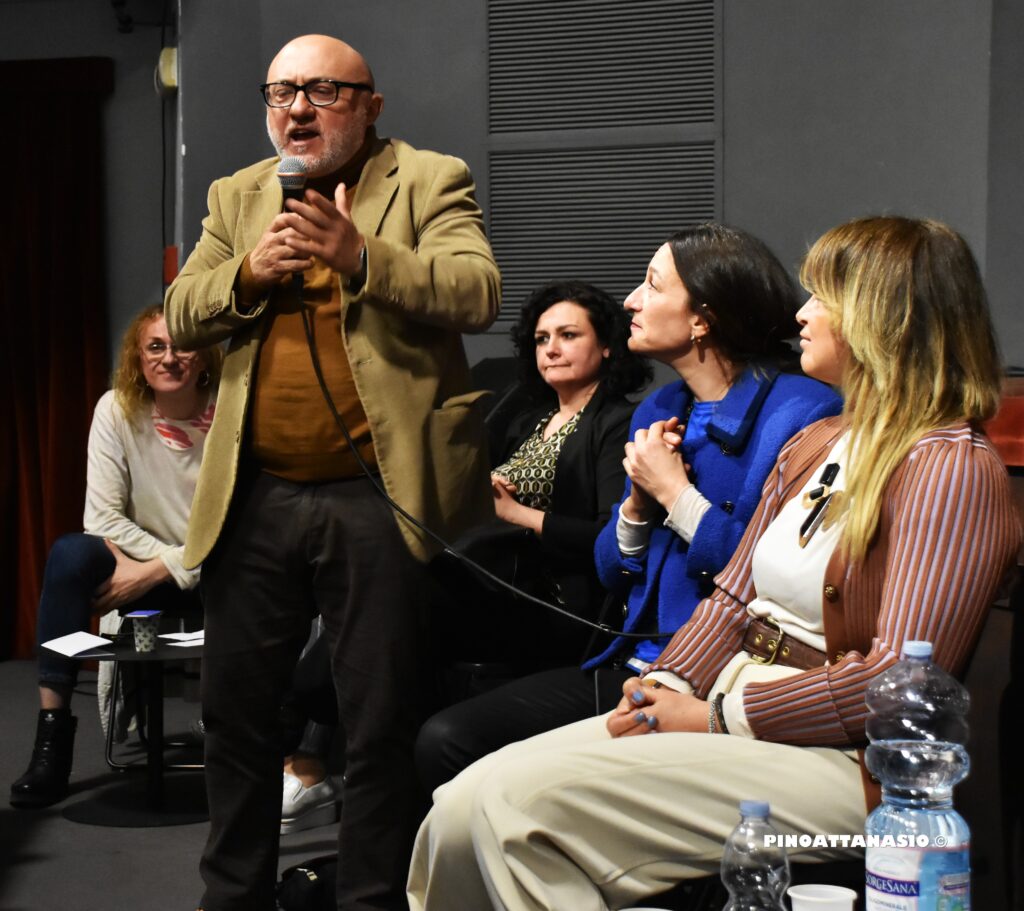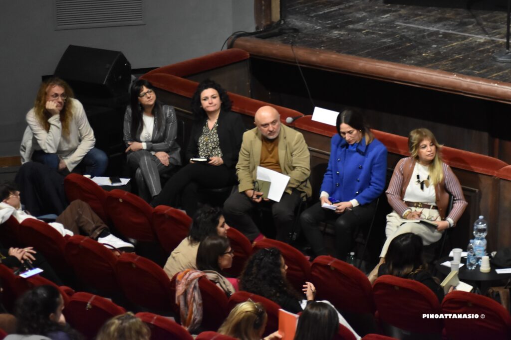 A seguire si è tenuto un tavolo di lavoro in linea con i temi dell’incontro, un confronto tra pedagogisti, attori, registi, esperti e testimoni privilegiati del mondo della scuola e del mondo artistico.