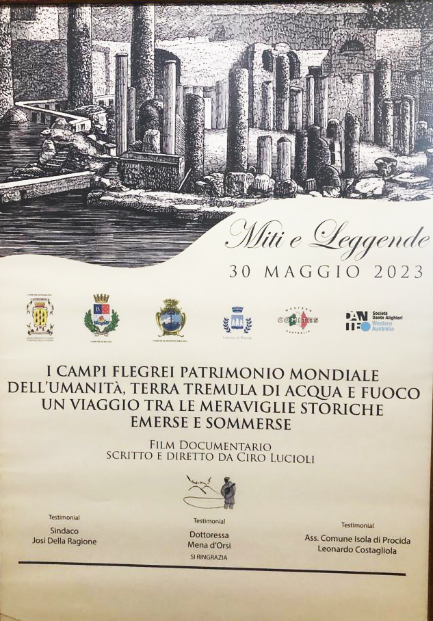 Si è tenuto presso Palazzo Migliaresi di Pozzuoli, la presentazione del film documentario” Miti e Leggende”, l’ultimo dei lavori ideato e diretto da Ciro Lucioli. Il film, interamente girato nei Campi Flegrei, è stato presentato nell’ambito della manifestazione “Eccellenze Napoletane” , la kermesse culturale che, come ogni anno, vede il riconoscimento di chi con il proprio operato ha contribuito a fare cultura.
