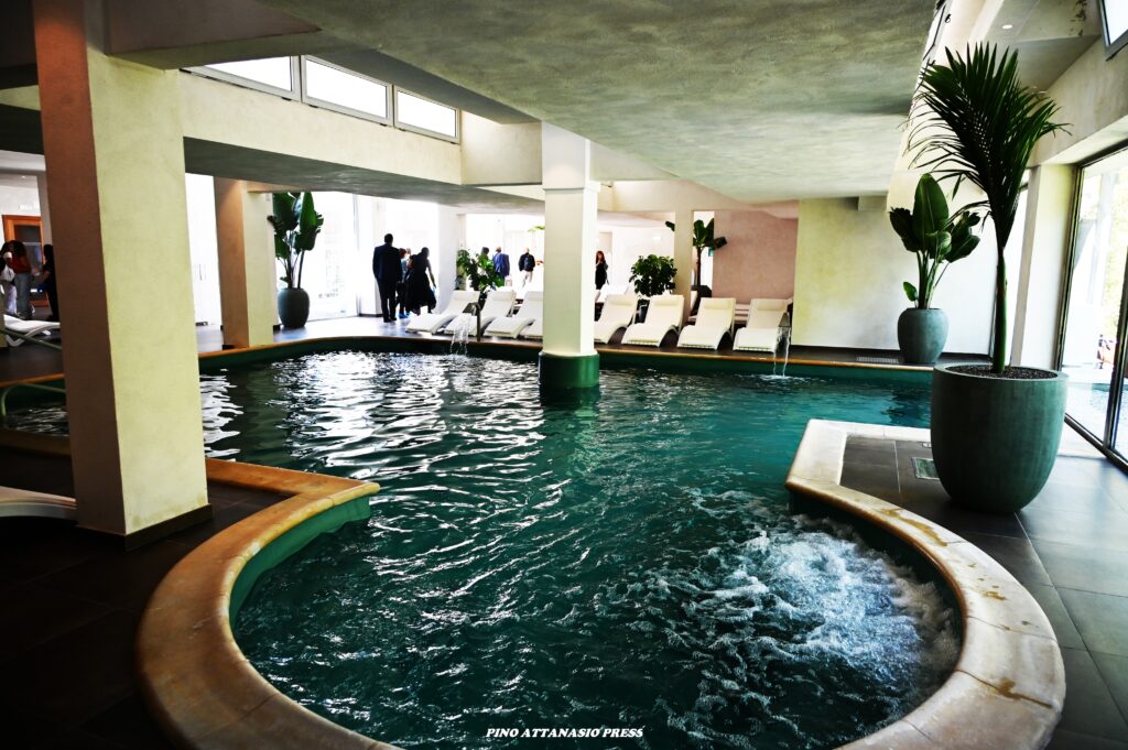 l’area include inoltre docce con cromoterapia, giardino zen, ampie zone relax interne ed esterne, lettino, spogliatoio con docce e armadietto personale, utilizzo giornaliero di accappatoio e telo, tasting corner ed altri servizi di eccellenza.