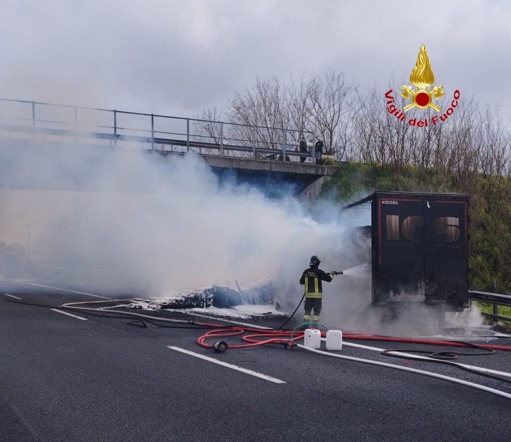 Il conducente del mezzo, accortosi delle prime avvisaglie di fumo, ha prontamente arrestato la marcia fermandosi in una piazzola di sosta. All’arrivo dei Vigili del Fuoco l’autoarticolato, che trasportava assi di legno, risultava completamente avvolto dalle fiamme, con una densa colonna di fumo visibile anche a distanza e notevoli disagi alla circolazione. L’autostrada è rimasta infatti chiusa per diverse ore per consentire le operazioni di spegnimento e messa in sicurezza dell’area.